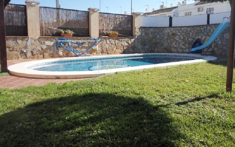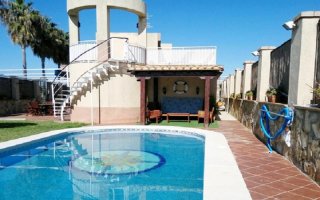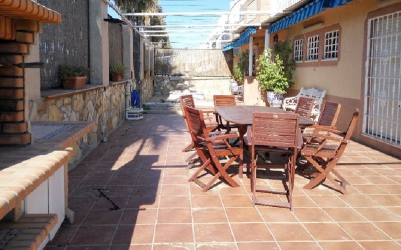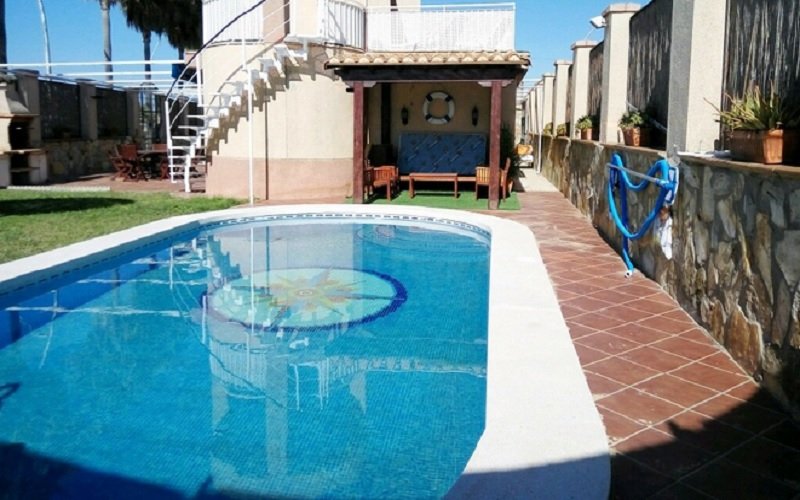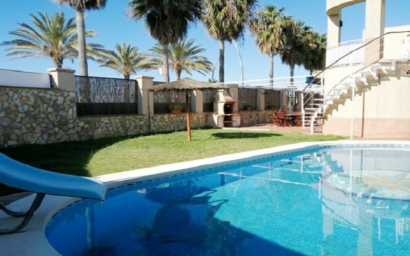 En primera linea de la playa , chalet de 5 dormitorios y 3 banos, cocina equipada, salon , jardin, piscina privada y barbacoa aire acondiciono en toda la casa y aparcamiento para 2 coche incluido. al lado de Chiringuito Macario