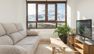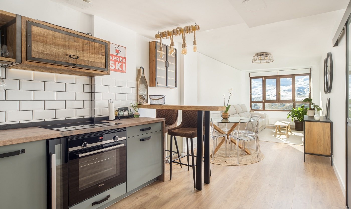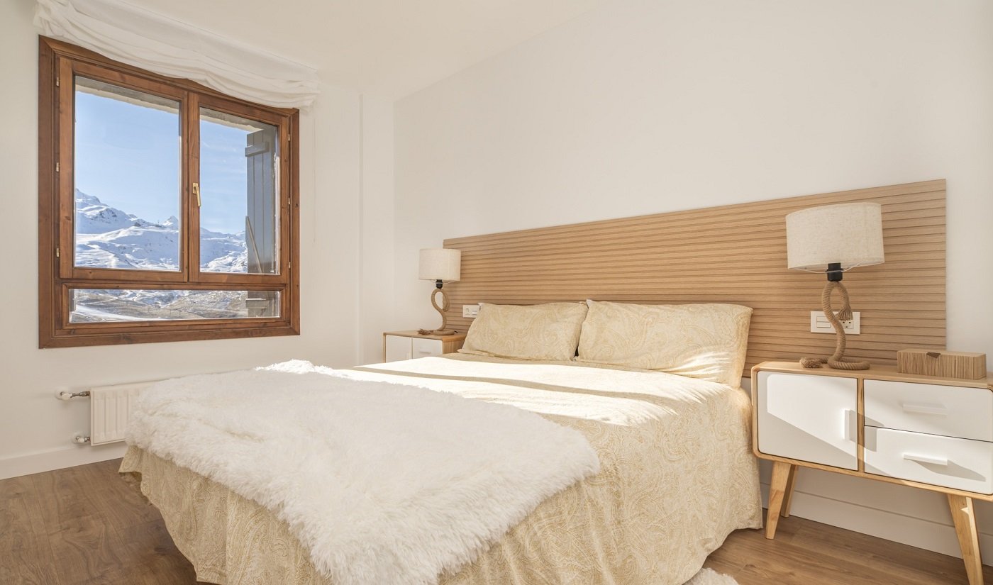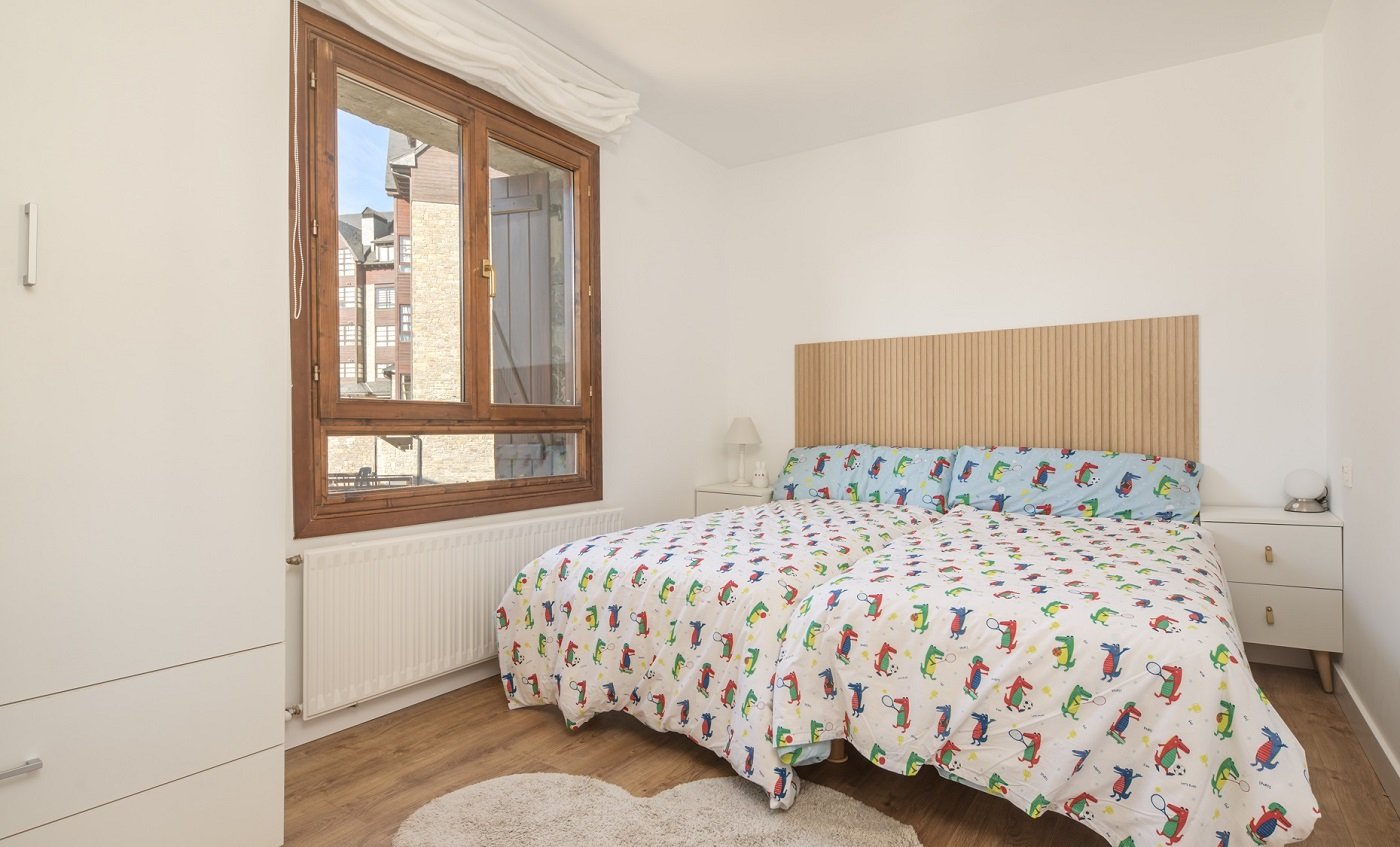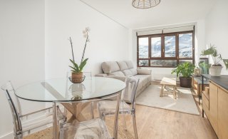 Piso Ed. Elurra Formigal Piso en la tercera planta del Edificio Elurra con ascensor desde el garaje ( dispone una amplia plaza de garaje y un trastero ) La propiedad de 60m2 acaba de ser entregada tras completarse una reforma integral y dispone de dos dormitorios dobles, con un baño completo con bañera y un aseo. La cocina de tipo americano totalmente actualizada y equipada se integra a la perfección con el salón que dispone de un gran ventanal con persianas eléctricas con una inmejorable orientación sur que proporciona unas espectaculares vistas a las pistas de esquí de Formigal. Sistema de calefacción con caldera individual de gas Todas las habitaciones disponen de armarios.