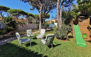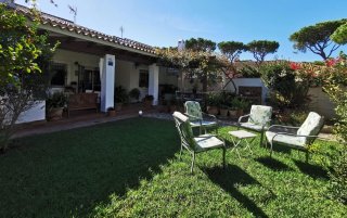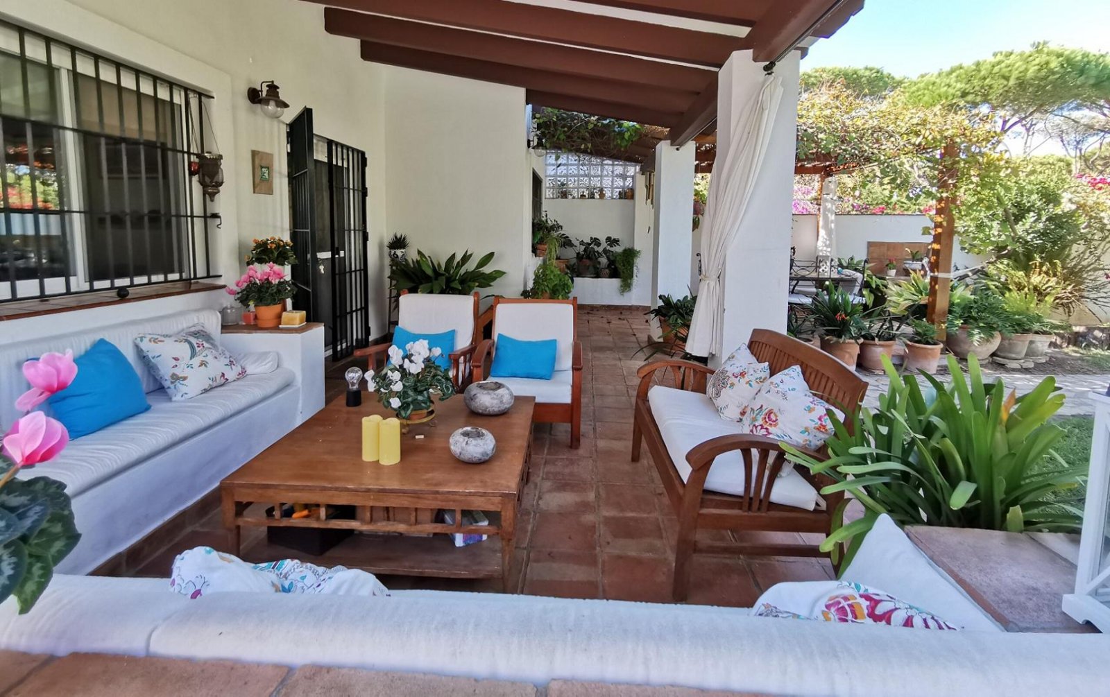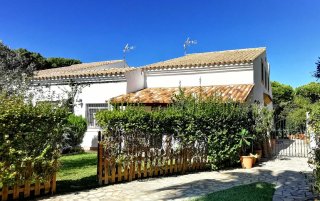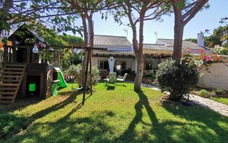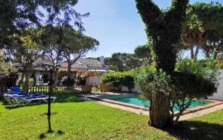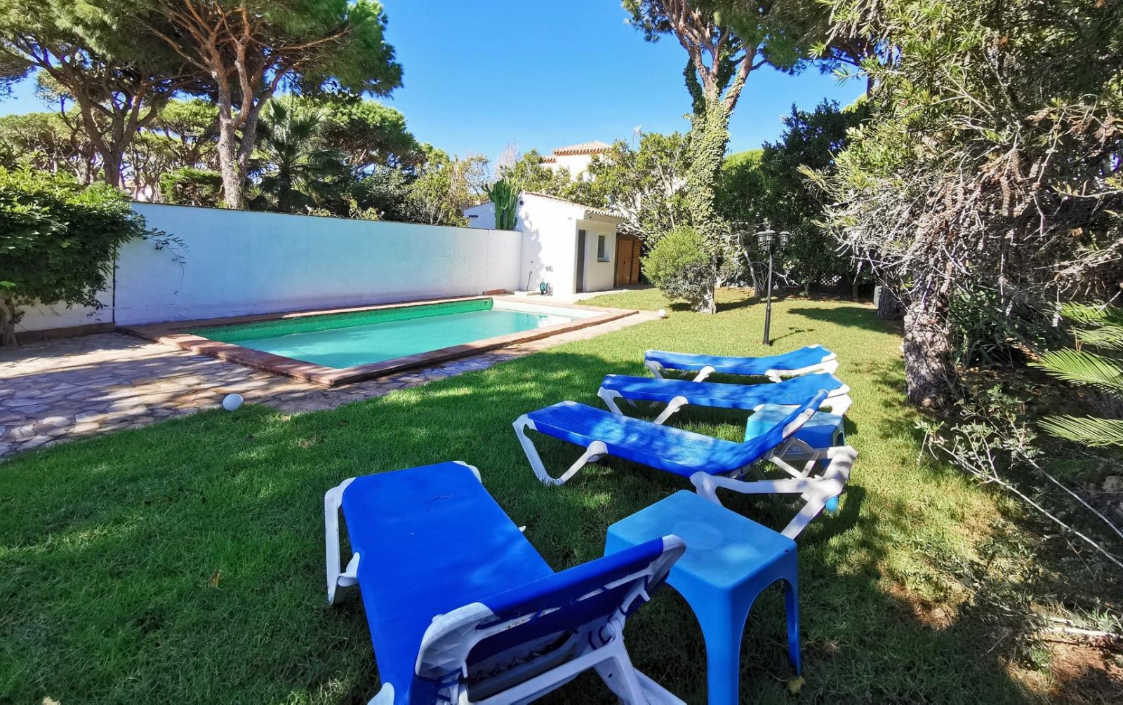 Chalet con piscina privada a 200 metros de la playa La Barrosa, 4 dormitorios y 2 baños, salón-comedor, cocina equipada, aire acondicionado, wifi, terraza, barbacoa.