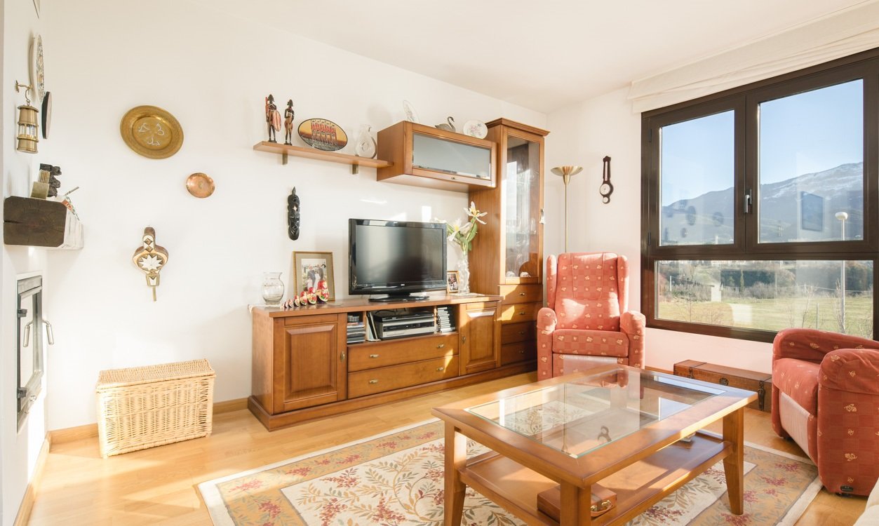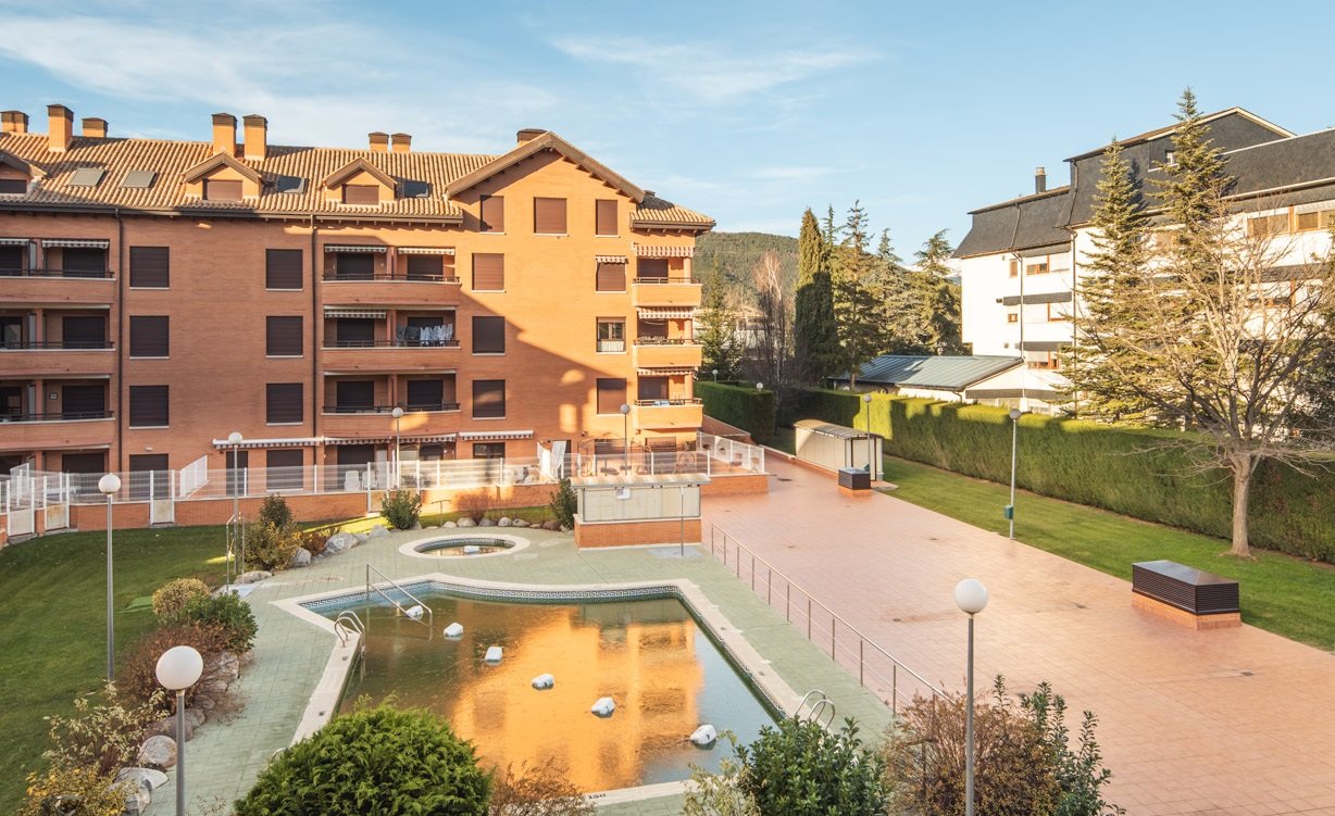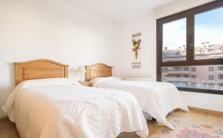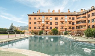 Piso de dos dormitorios situado en la zona del Llano de la Victoria en Jaca, ofrece unas vistas despejadas y espectaculares a la majestuosa Peña Oroel desde su balcón-terraza. Su distribución ofrece el máximo confort, con un amplio recibidor, salón-comedor con chimenea y acceso a su balcón terraza, cocina independiente con acceso a balcón con vistas a la zona común de piscina, dos amplios dormitorios dobles y baño completo. La calefacción de gas individual con radiadores proporciona un ambiente cálido y agradable durante los meses más fríos. Dispone de plaza de garaje y trastero, brindándote espacio adicional para tus necesidades de almacenamiento. La comunidad dispone de zonas verdes con una bonita y amplia piscina con zona infantil. En un entorno privilegiado en pleno corazón del Pirineo Aragonés.