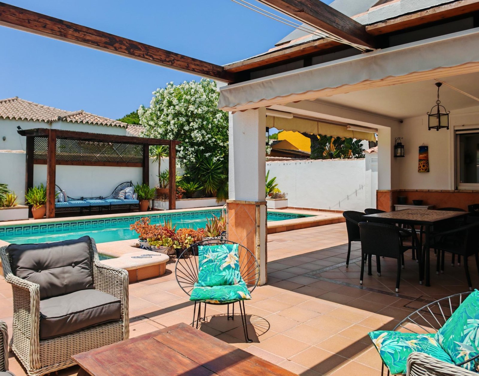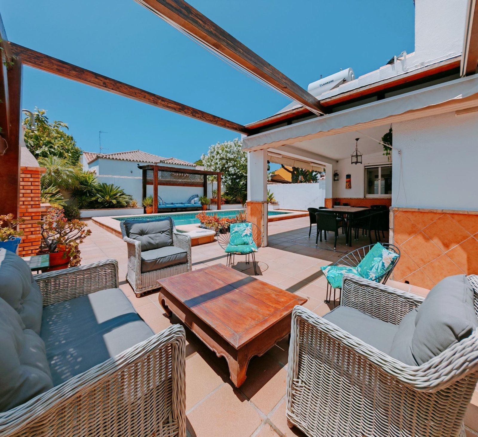 Chalet en Chiclana situado en la zona del Coto de la Campa, a 1 Km. aprox. de la playa La Barrosa, cercano a supermercados, farmacia, restaurantes, parada de autobús..., distribuido en 2 plantas; en la planta baja: hall de entrada, salón comedor, 1 dormitorio, baño, cocina y cuarto de lavandería; y en planta alta: 4 dormitorios y baño. En el exterior barbacoa, piscina, aparcamiento y porche.